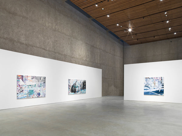 In addition to fragmentation and restructuring, repetition is another important element in Corinne Wasmuht’s artistic strategy. Single motifs sometimes resurface in a number of works, often several years apart. The work entitled U1 on show in the exhibition, for instance, features an exact excerpt from Uqbar 1 from 2011. By focusing on a specific section of the image, the artist develops a new narrative in the current piece that mines the structure and dynamic nature of the differently rendered details.