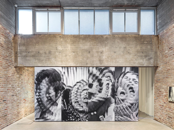 The mediation of historical images by analog means (no digital manipulation or output) in the tactile medium of silkscreen further obscures their date of production in a manner akin to Shaw’s filmic works. He continues to tap into a lexicon of visual effects commonly used to illustrate psychedelic experience, spiritual ecstasy and hallucinatory madness (for subject represented and viewer alike). The parenthetical parts of the artworks’ titles (‘Emotional Audience’, ‘Teen Challenge’, ‘Impassioned Sermon’) are taken from fragments of text found on the back side of the archival source photos – a corresponding newspaper clip or notes made by the original photographer themselves – and offer little evidence as to the primary date and location; the images remain suspended in time.