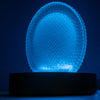 Monira Al Qadiri’s Zephyr series (2023), a collection of three luminescent sculptures, invites the viewer to consider the importance of organisms invisible to the naked eye. During prehistoric times, much of the Arabian Peninsula was submerged in water—consequently, ancient marine fossils can be found in inland areas. Some of these fossils are of dinoflagellates, microscopic marine algae that have existed for hundreds of millions of years and produce half of the world’s oxygen. In Zephyr, Al Qadiri was inspired to recreate these organisms on a larger scale, lighting them to mimic their bioluminescent nature. The artwork demonstrates the necessity to pay attention to the health of our oceans and reinstates the relationship between the coastal Gulf and the sea.