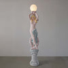 concrete statue, acrylic paint, handmade cotton crochet, plastic globe, light bulb, electric system